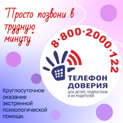 С 9 февраля 2026 года стартовала Неделя информирования о детском телефоне доверия — важной службе поддержки для детей, подростков и их родителей. Телефон доверия доступен круглосуточно и бесплатно по всей стране: 8-800-2000-122.